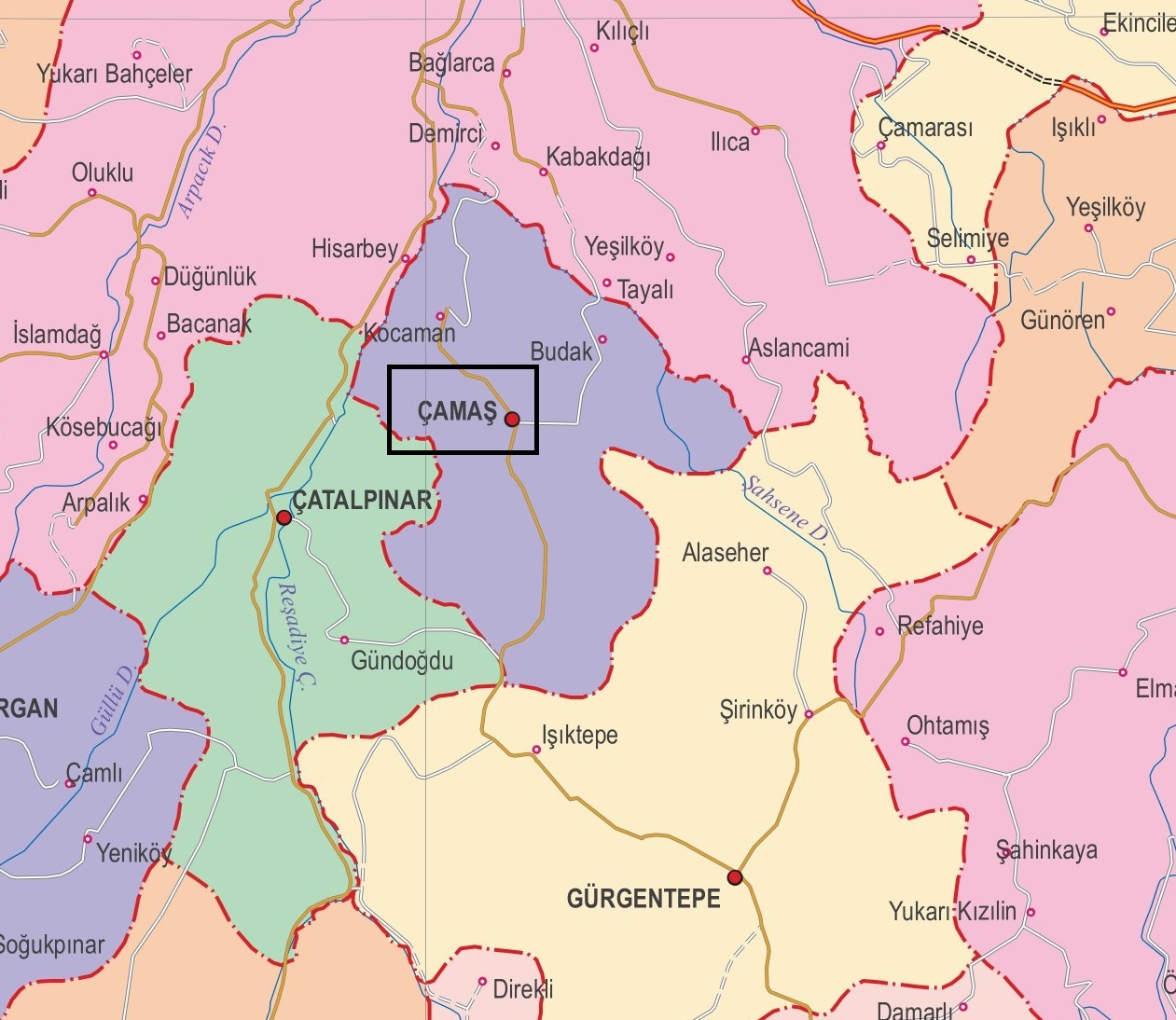 Çamaş İlçe Haritası